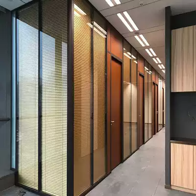 Office high partition double-layer tempered aluminum alloy louver Stainless steel atomized dimming glass wall custom with installation