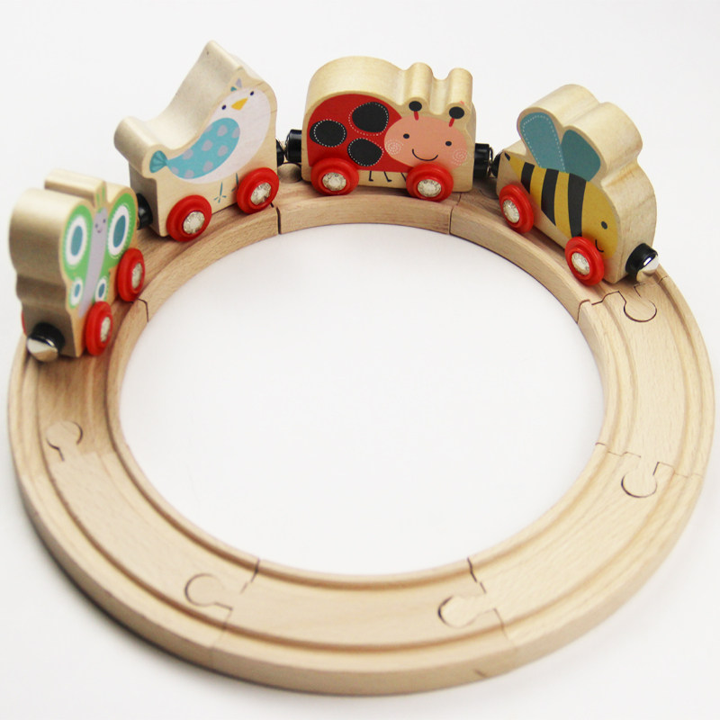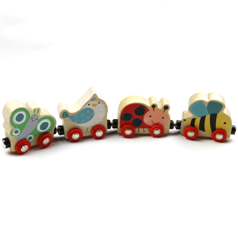 Magnetic wooden cartoon small train toy compatible with brio millet wooden rail car 6m rabbit toy 3 years old