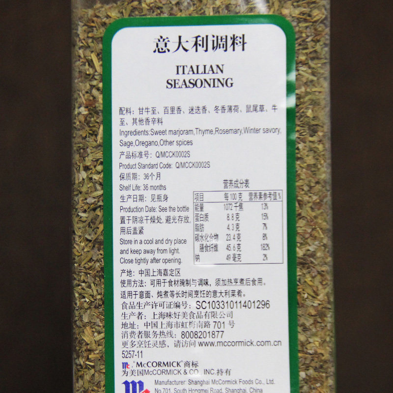 McCormick Italian Spice Commercial Integrated Spice Grill Sauce Shi Vanilla Weed Pasta Pizza 170g