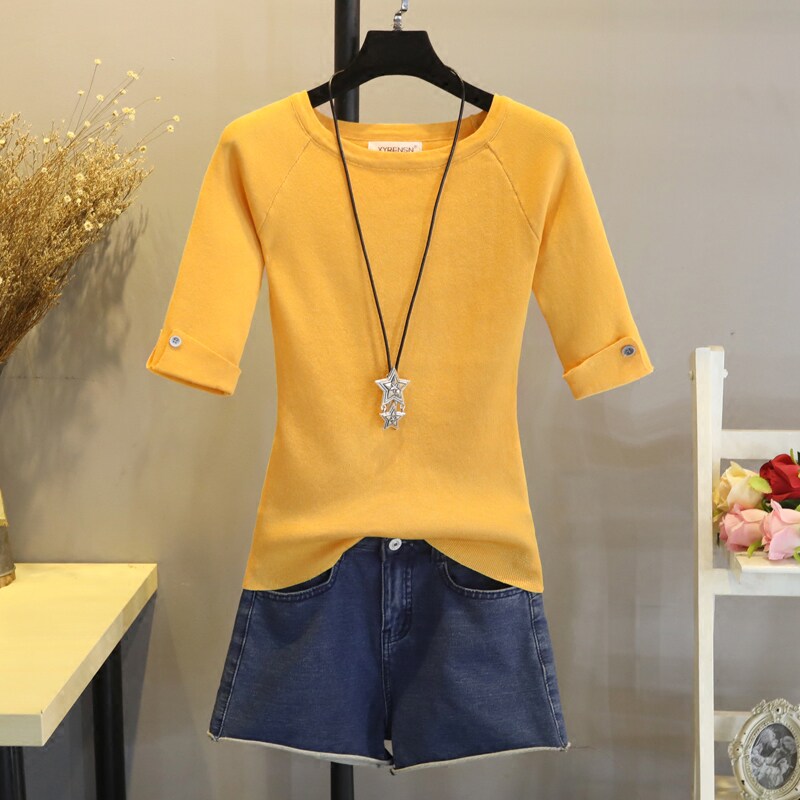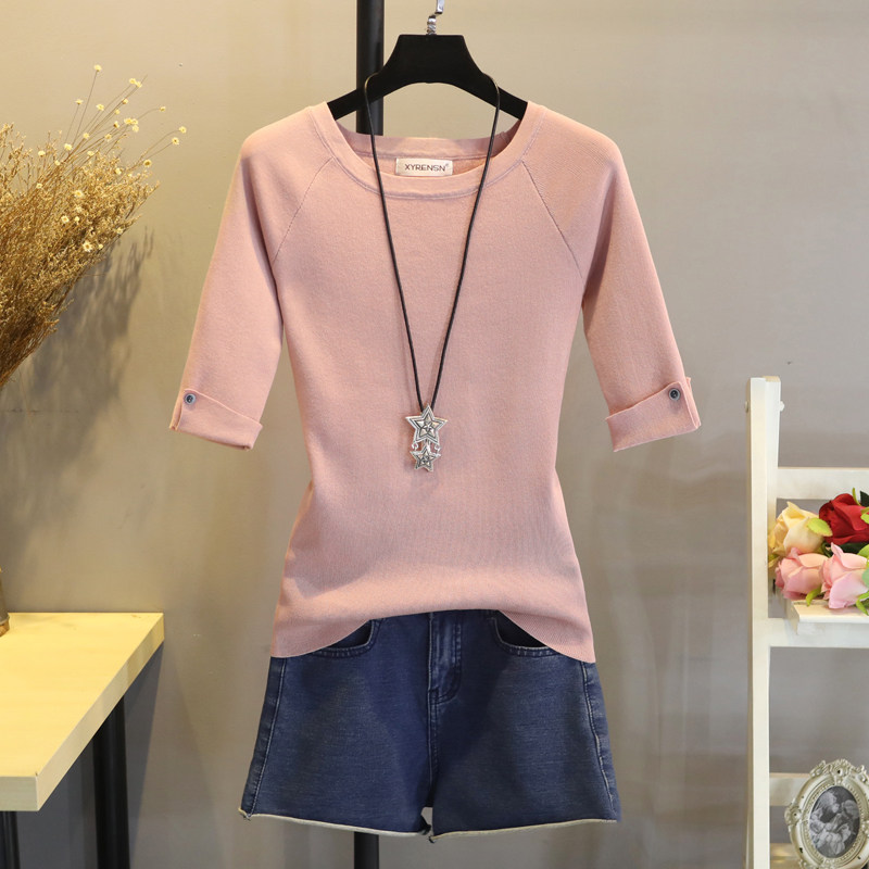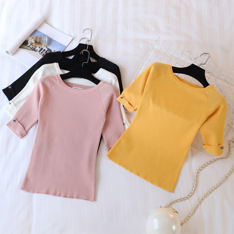 Ice Silk Knitted Shirt Women's Spring Dress Sleeve Jacket Women's 2021 New Thin Ice Hemp Half Sleeve Slim Tight Backing Shirt