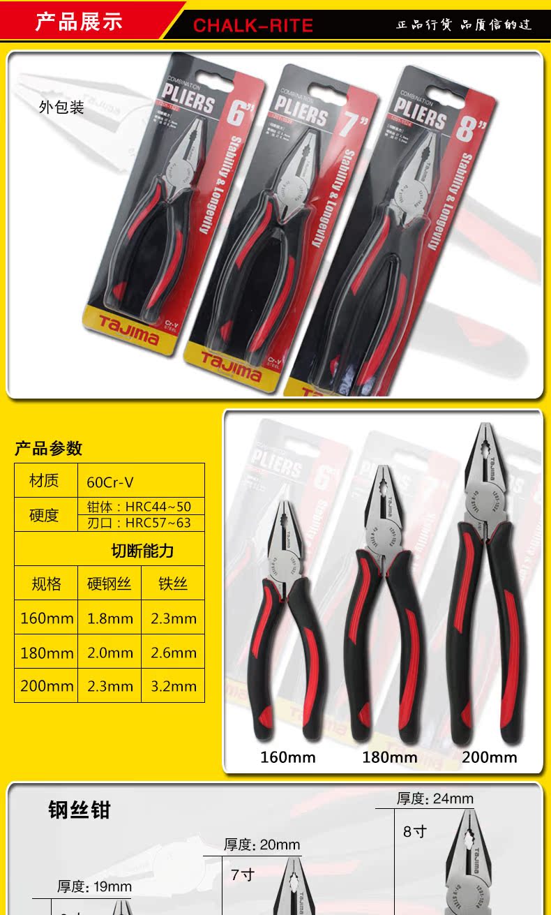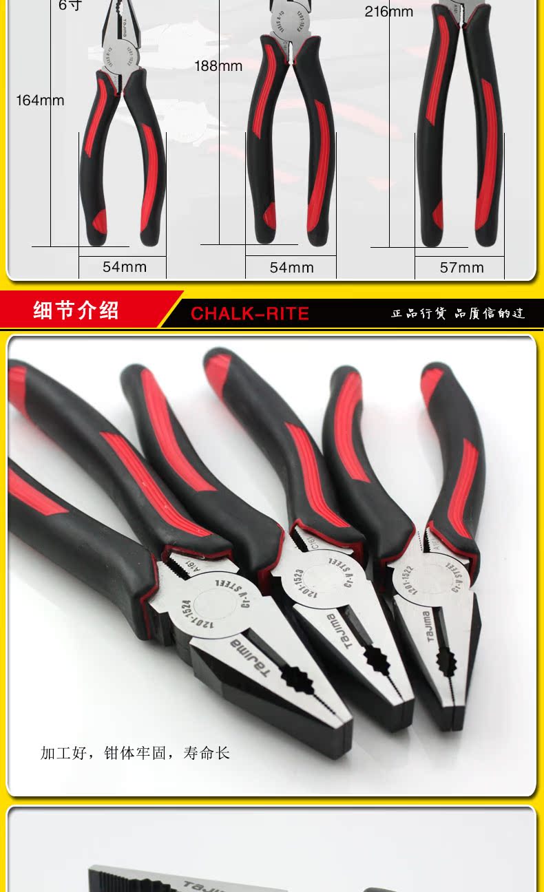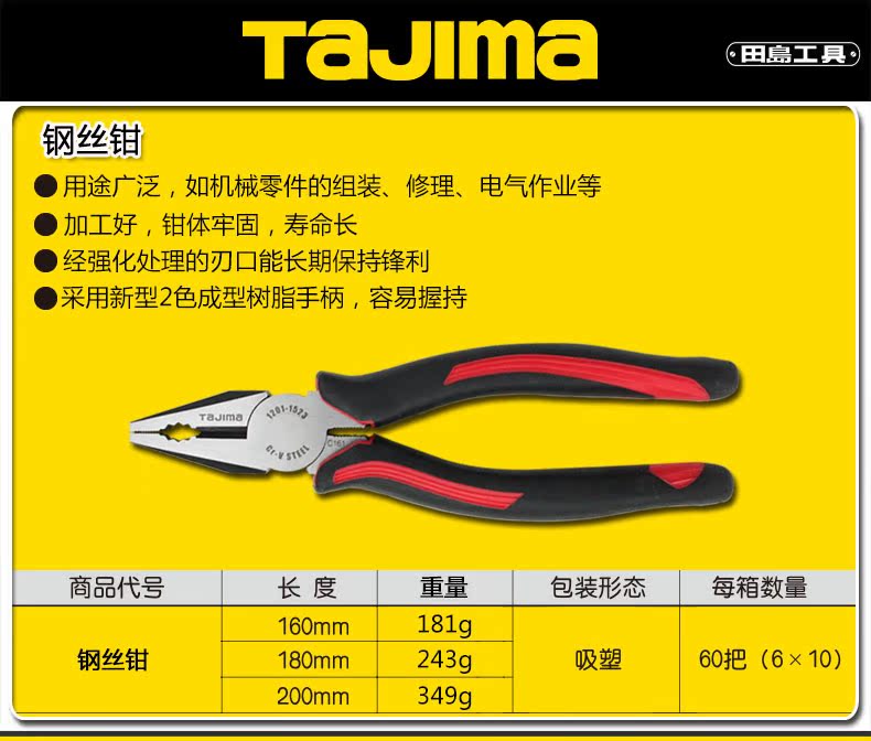 Tajima Tian Island Steel Wire Pliers Old Tiger Pincers Electrician Pliers 6 Inch 7 Inch 8 Inch Chrome Vanadium Alloy Steel