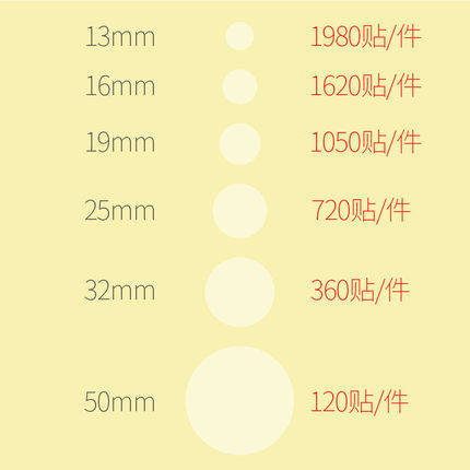 Diameter 13MM 1980 PATCH PACKAGE DIAMETER 16MM 1440 PATCH PACKAGE DIAMETER 19MM 1050 PATCH PACKAGE DIAMETER 25MM 720 PATCH STRAIGHT