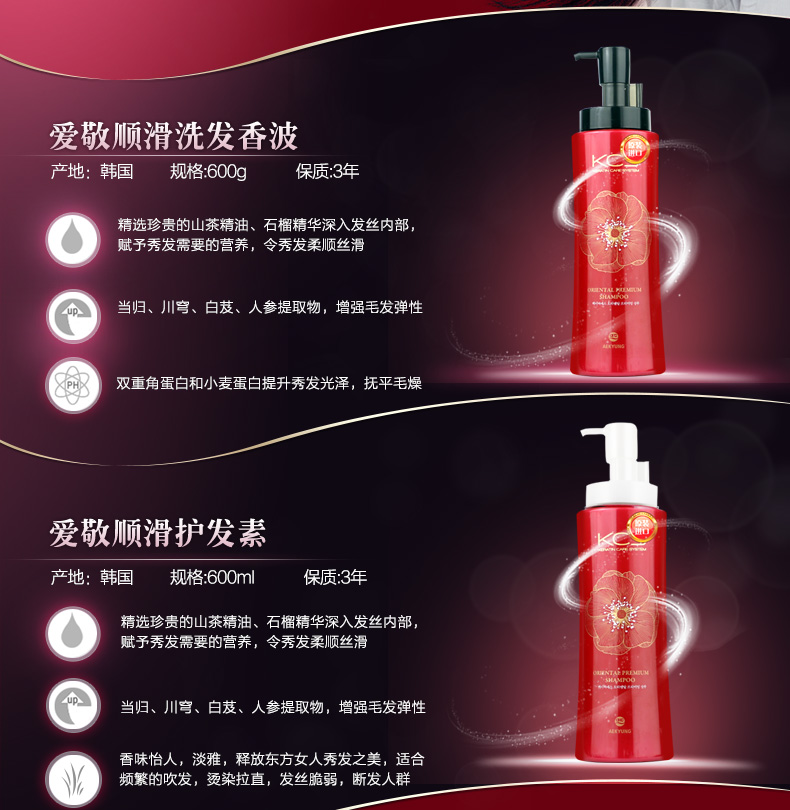 Korea Aijing kcs smooth shampoo conditioner smooth wash care set repair Camellia imported 3 bottles