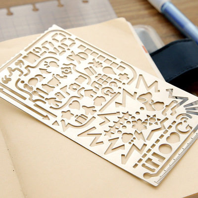 (Her Main Son) Cute Personality Handbill Ruler Metal Hollowed-out Letter Digital Ruler Multifunctional Living Element Ruler