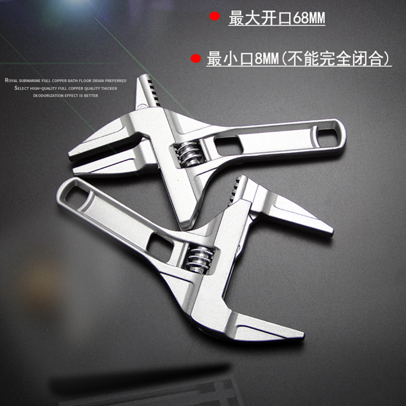 Large opening 68mm sewer air conditioning live mouth universal wrench Multi-function adjustable wrench short handle bathroom wrench