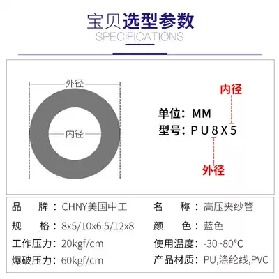 Spinning three-layer hose 8*5 high-pressure pipe Blue 100 meters to male and female joints clamping yarn three-layer hose 10*6 5 high-pressure pipe Blue 100 meters to male and female joints spinning three-layer hose 12 *