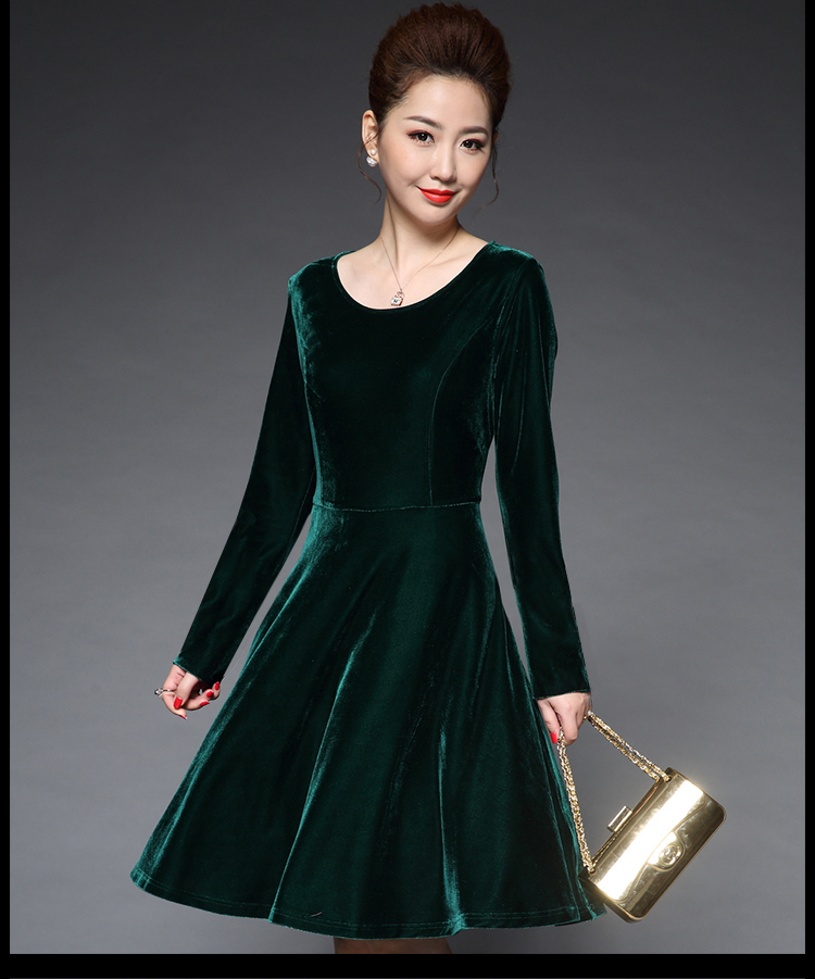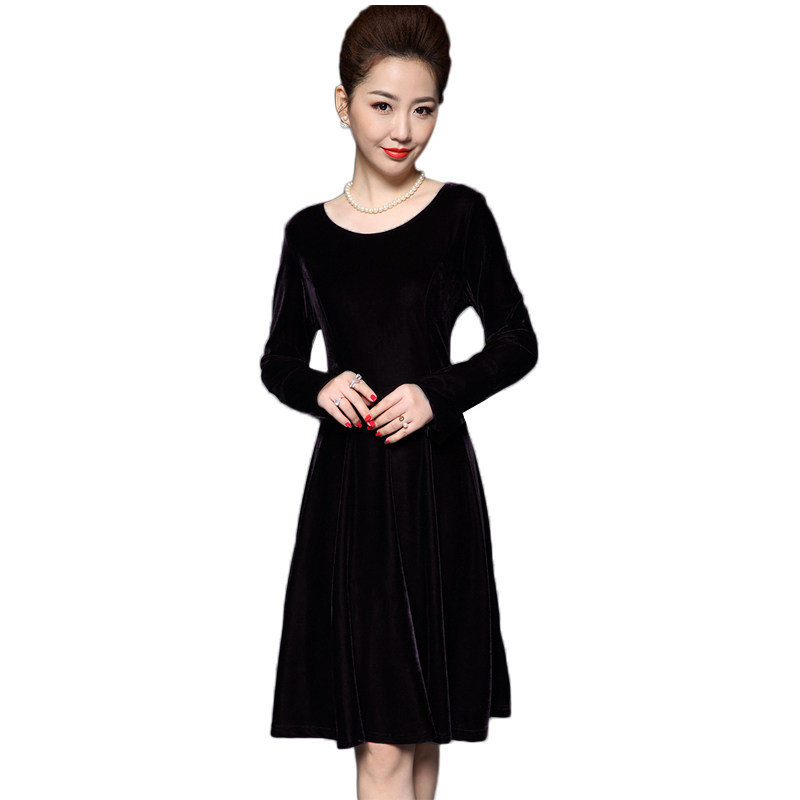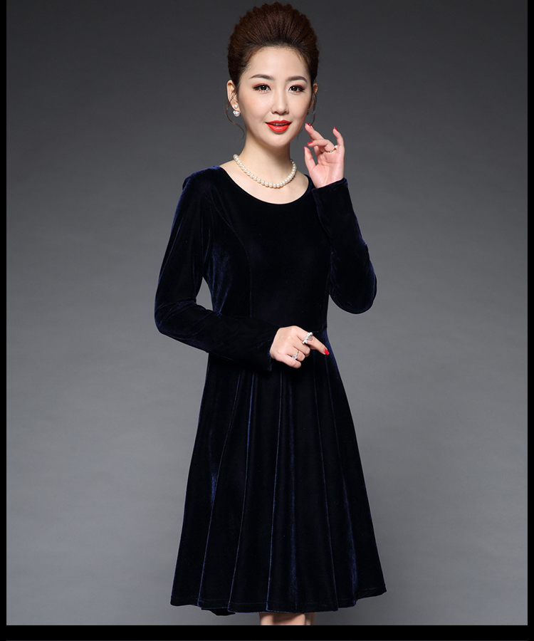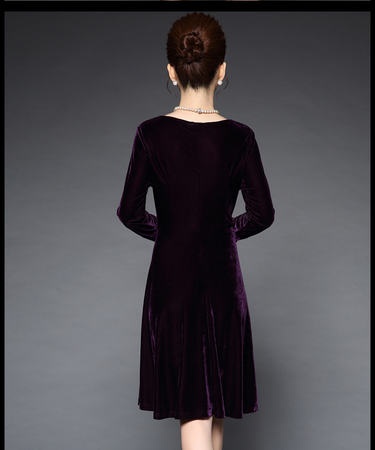 2022 spring new women's wear round neck slim fit large swing plus size middle-aged gold velvet dress mother dress long sleeves