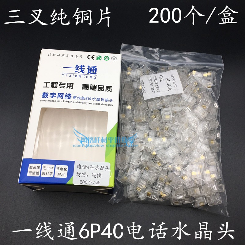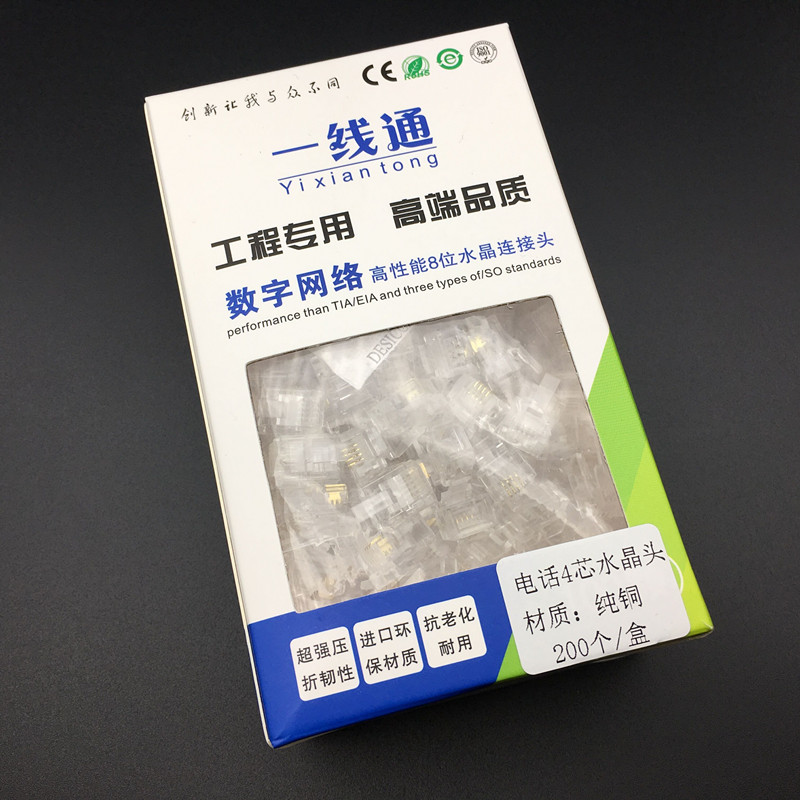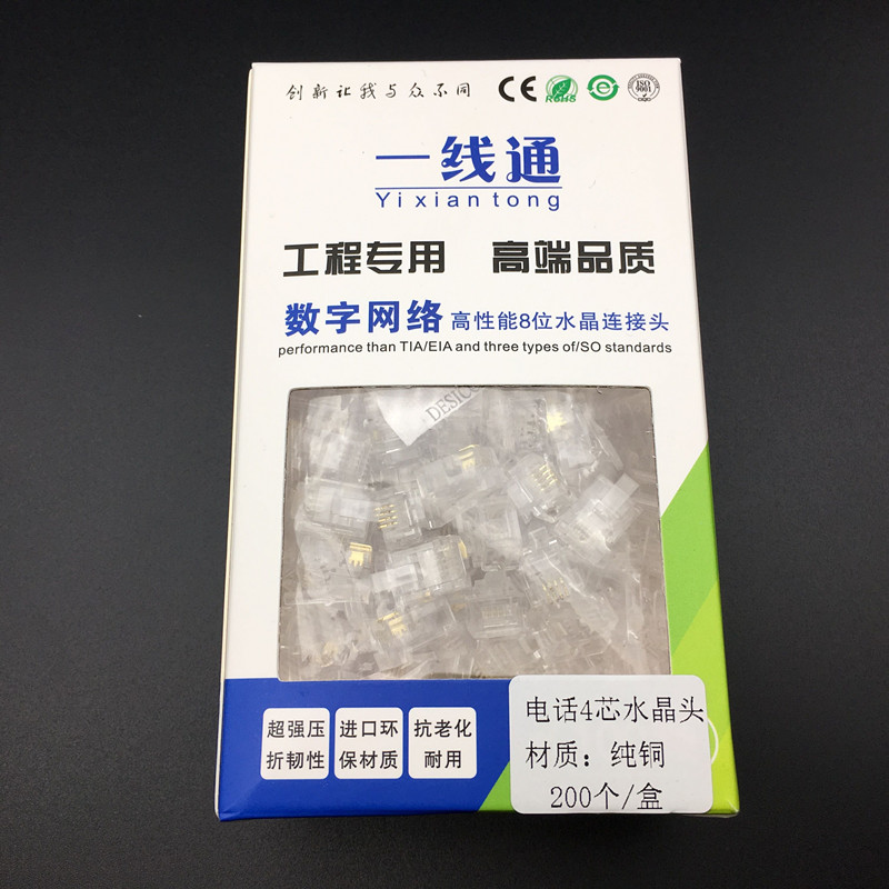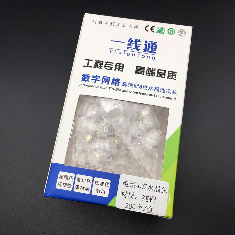First line 6P4C telephone crystal head RJ11 telephone crystal head 4 core phone crystal head 200 boxes