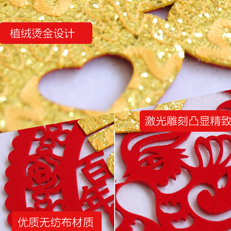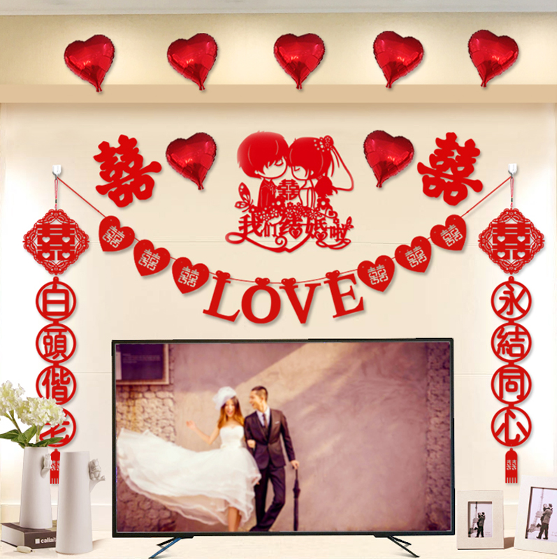 Happy Newlywed - Bedside Decoration Kiss - TV Wall Decoration We Are Married - TV Wall Decoration Gold Powder Couple - TV Wall Decoration Double Hi Laxi - Gilded Flower Ball Kissing Yuanxi Set - Background Wall Decoration Flower Good Moon Full Moon - Golden Phoenix Crown Happy Family Suit Kissing Suit Kissing Suit - Customized Bobozai Set Mandarin Duck Set Happy Word Sticker Set New Package One Wing Bird Hanging Curtain New Non-Woven Round Joy Fan Flower Set