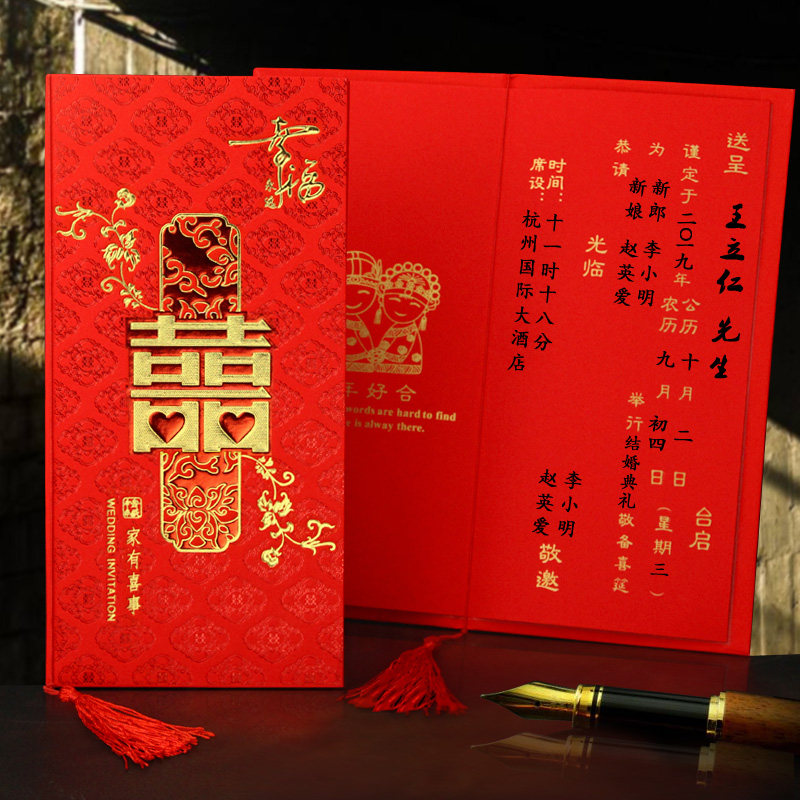 Wedding invitation Wedding invitation Wedding wedding invitation Hard shell Chinese retro romantic Su invitation print post