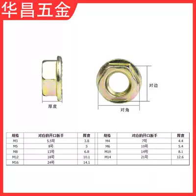 Non-slip screw cap galvanized hexagon flange nut M3M4M6M8 with padded flower tooth nut M10M12M14M16
