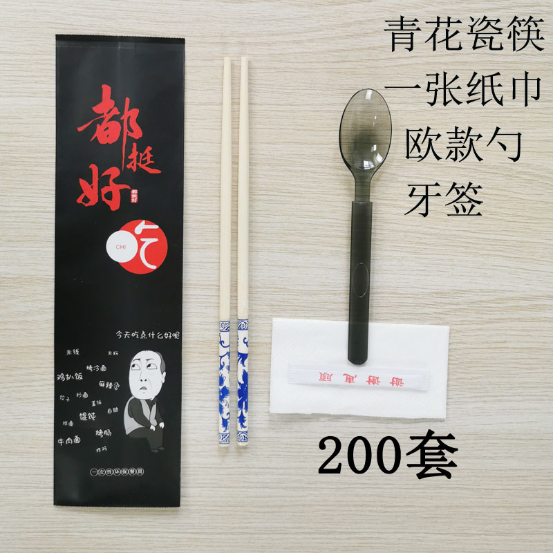 Food word blue and white chopsticks spoon paper toothpick 200 sets of black blue and white chopsticks paper toothpick 200 sets of black blue and white chopsticks European spoon paper toothpick 200 sets of food word blue and white chopsticks gloves wipes Toothpick 200 sets of food word blue and white chopsticks