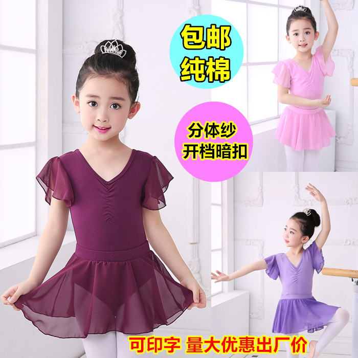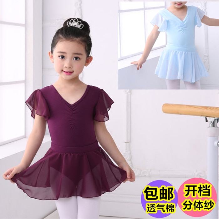 Children's practice clothes kindergarten short-sleeved ballet skirt open file jumpsuit gymnastics suit test grade jumpsuit ballet dress