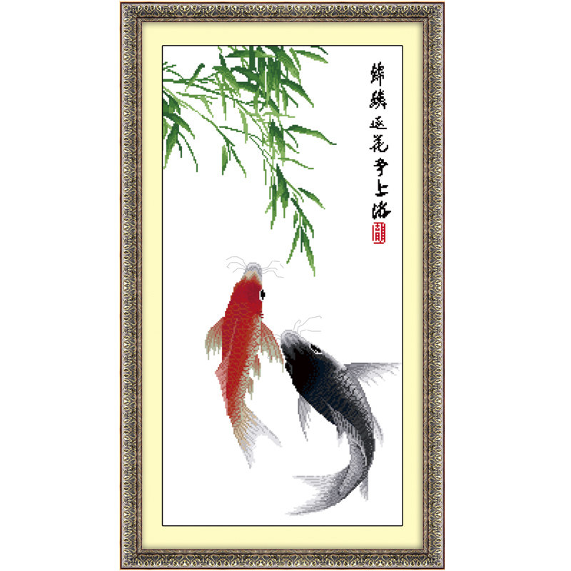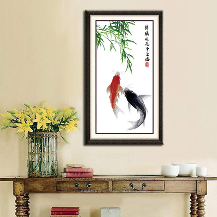Mona Lisa printed cross embroidered year with new line embroidered carp picture minimalist living-room Bedroom slightly simple