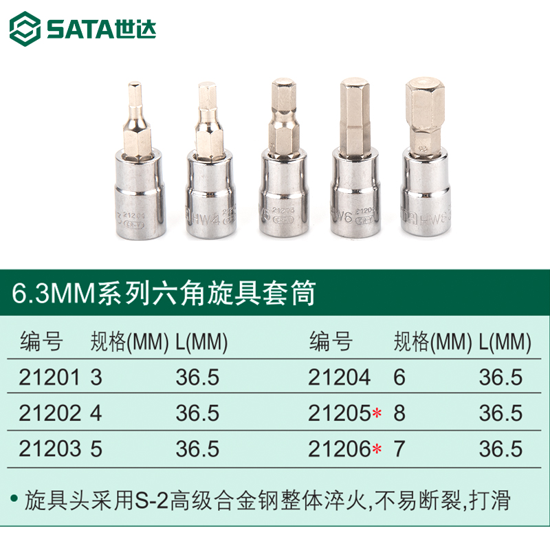 21201 3mm 21202 4mm 21203 5mm 21204 6mm 21205 8mm 21206 7mm