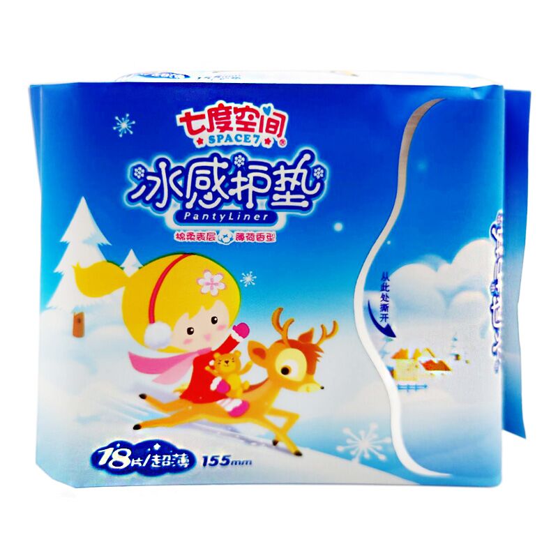 Seven-degree space sanitary cotton ice-sensing pad cotton soft surface mint flavor 155mm 18 pieces in 5 boxes of 90 pieces