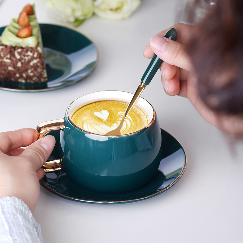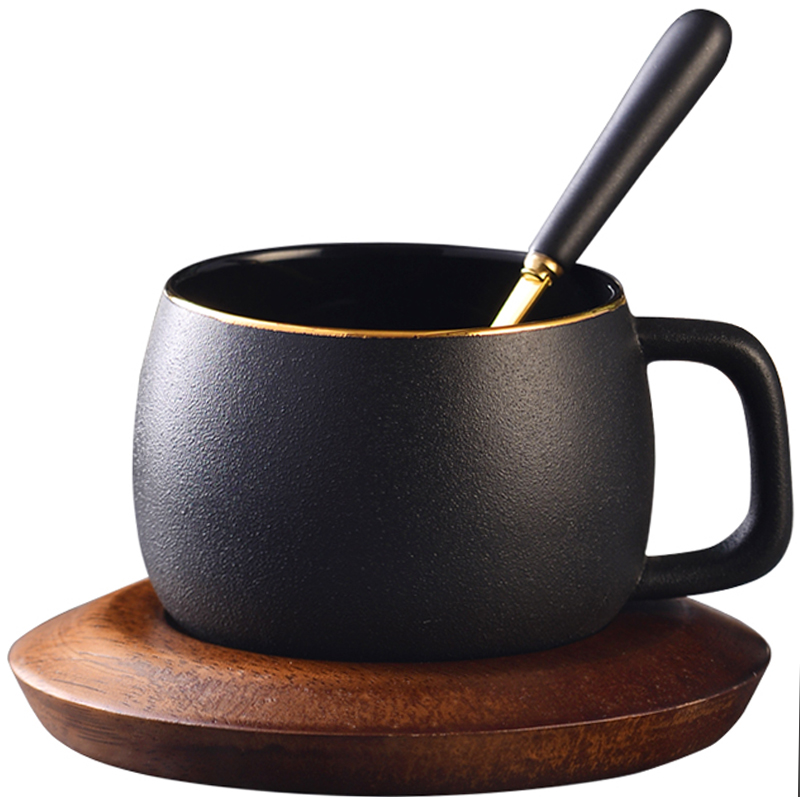 A cup of matching porcelain dish (no sketching) a cup of matching porcelain dish (sketching) a cup with a spoonful of wood care (no sketching) a spoonful of wooden care (sketching) engraving a custom work Bente frosted