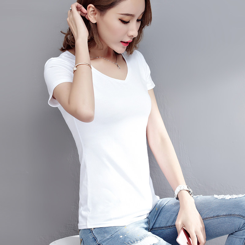 Meibing pure cotton v-neck white t-shirt women's short sleeve slim summer 2021 new solid-color t-shirt women's short-sleeved top