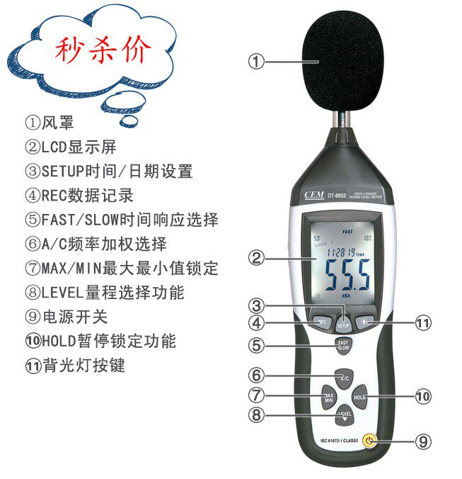 DT-8852 CEM Noise Meter Handheld Noise Tester Factory Noise Detection Indoor Noise