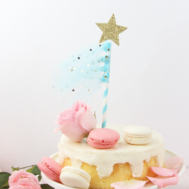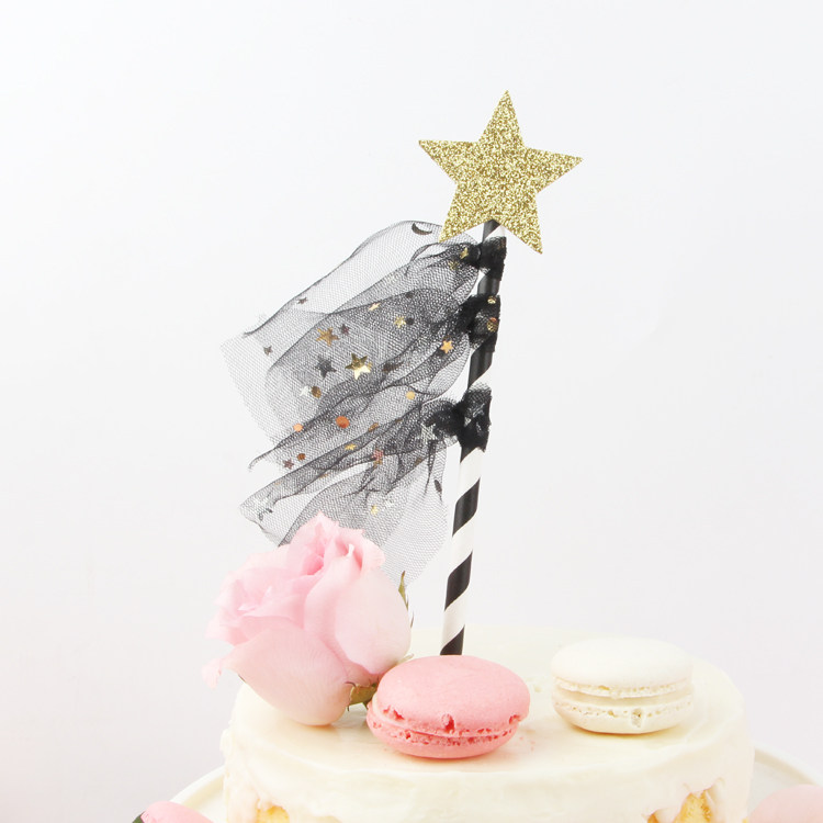 Straw Flag Star Mesh Tassel Cake Plug-In Creative Dessert Table Cake Decoration Flag