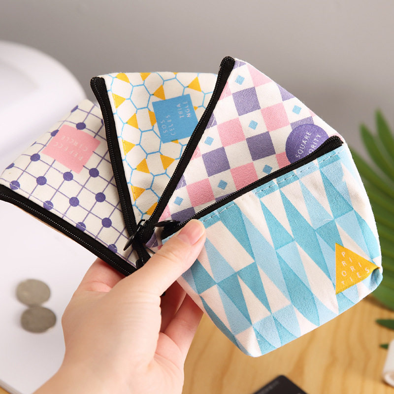 Canvas geometric coin purse 4 colors 1 blue each now pink figure
