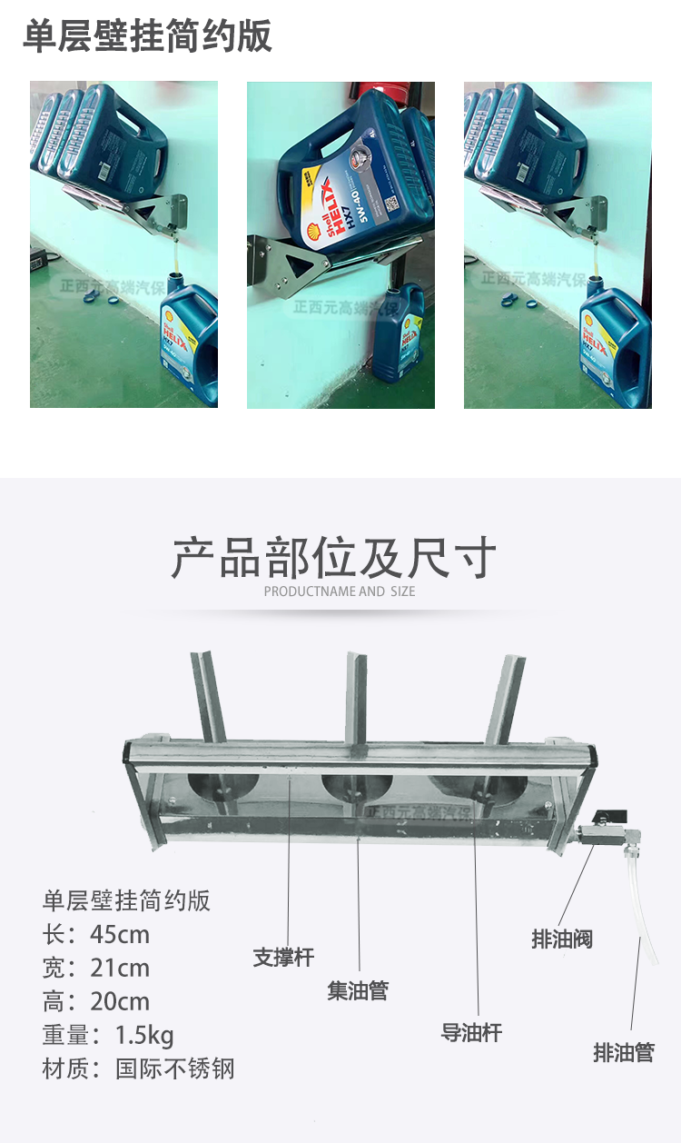 Oil collector car wall hanging residual oil recovery oil recovery frame stainless steel tank oil collector