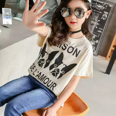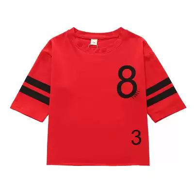 2021 spring and summer new medium and large girls loose mid-sleeve short-sleeved three-point sleeve baby T-shirt children's casual top