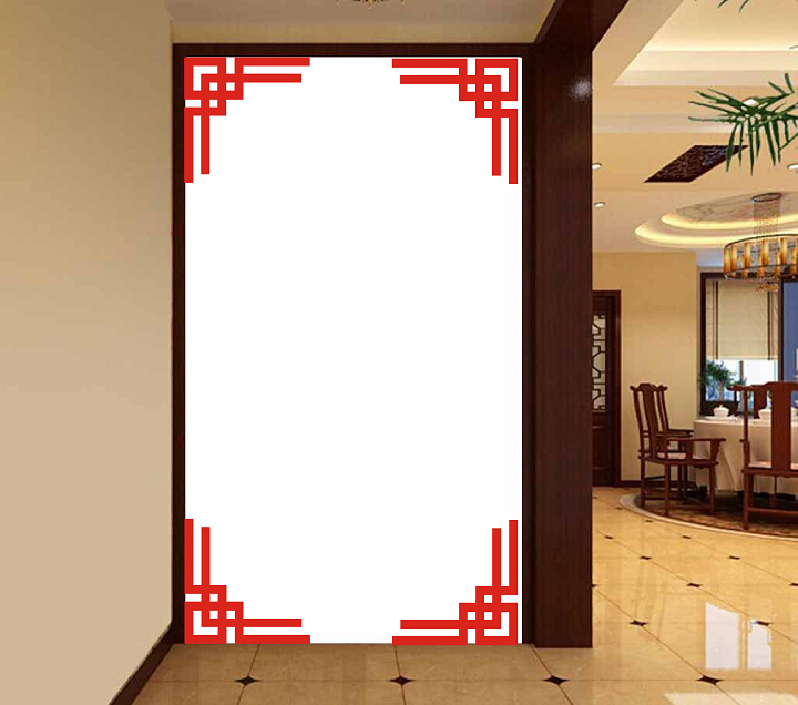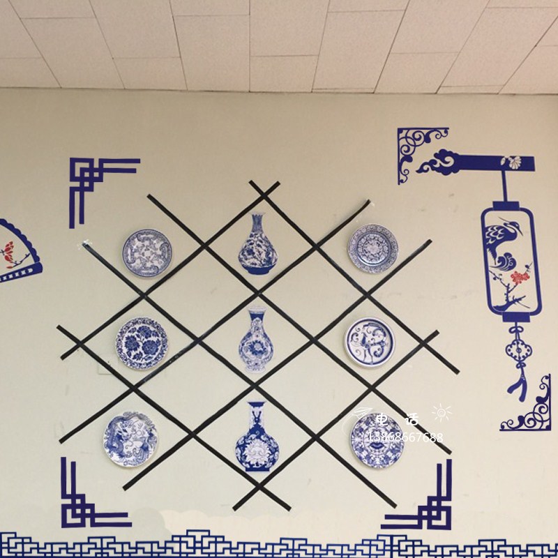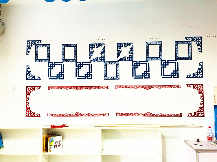 Kindergarten school wall creative layout non-woven Chinese style classical blue and white diagonal pane border wall stickers