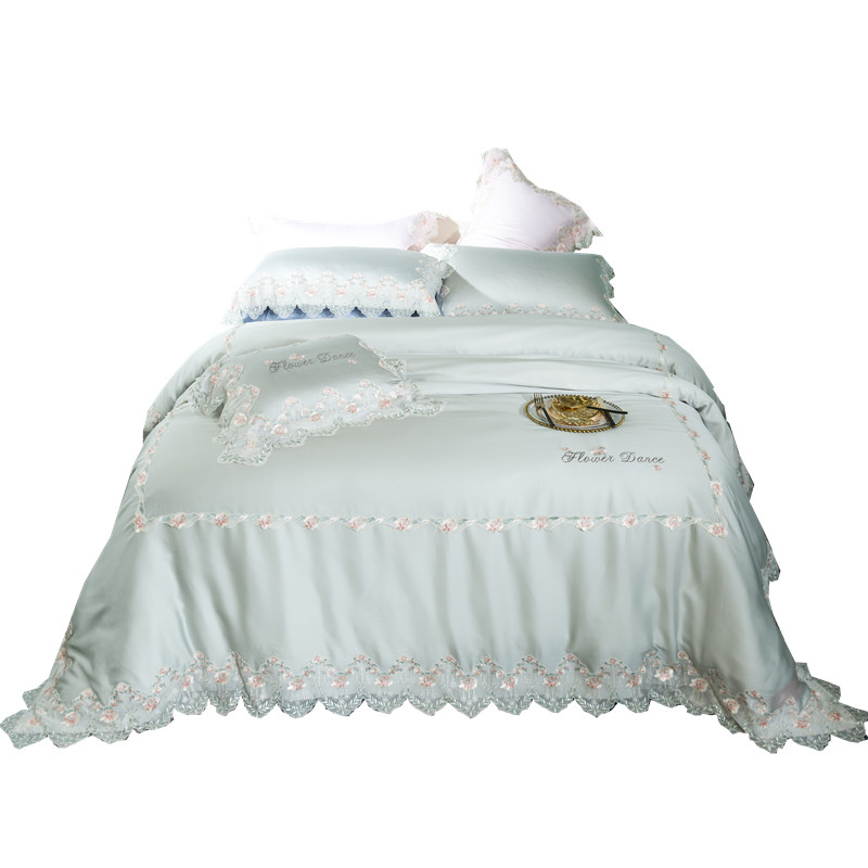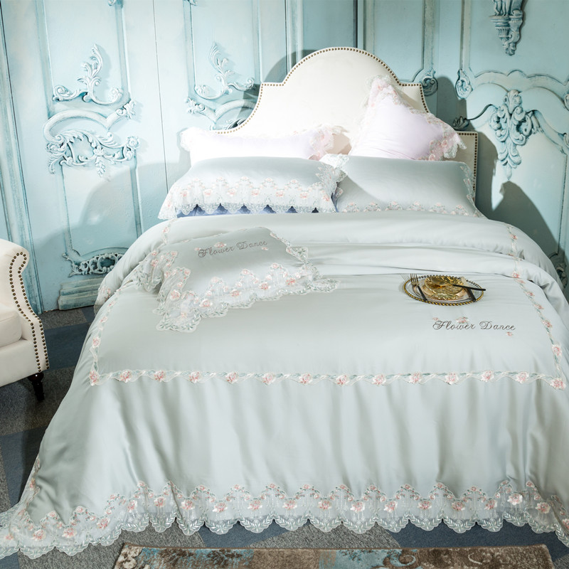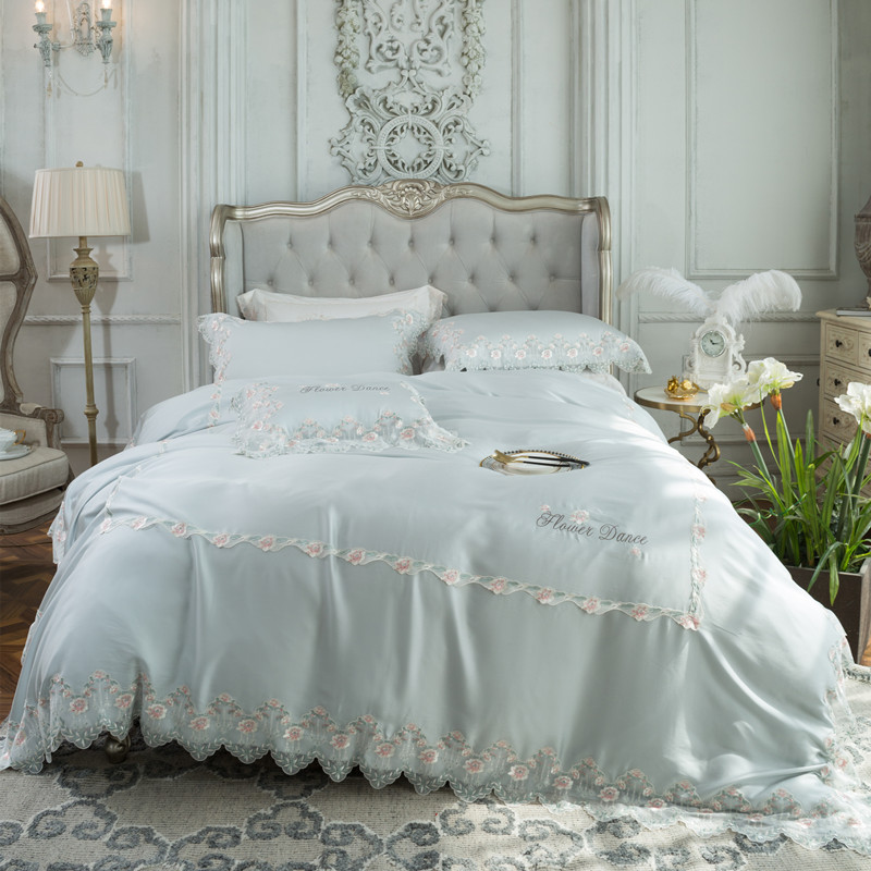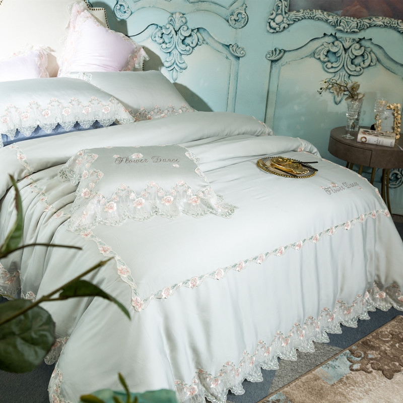 French lace 80 pieces tencel four-piece set ice silk naked sleeping European style court princess style embroidery 1 8m wedding bed set - Taobao