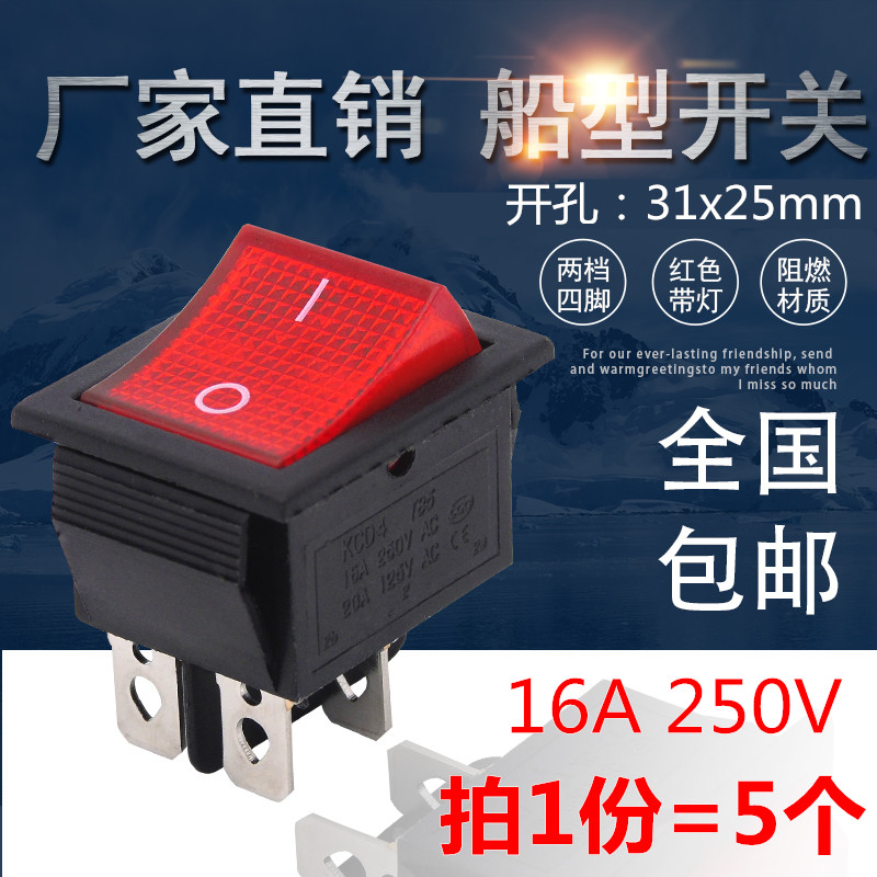 KCD4 rocker switch boat-shaped switch rocker power button 4 6 foot red light green light 31x25mm16A250V