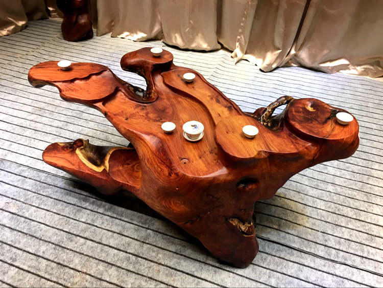 Myanmar flower pears root carving tea table tea sea solid wood root carved tea table whole tree root tea table qutian tea table and chair special price