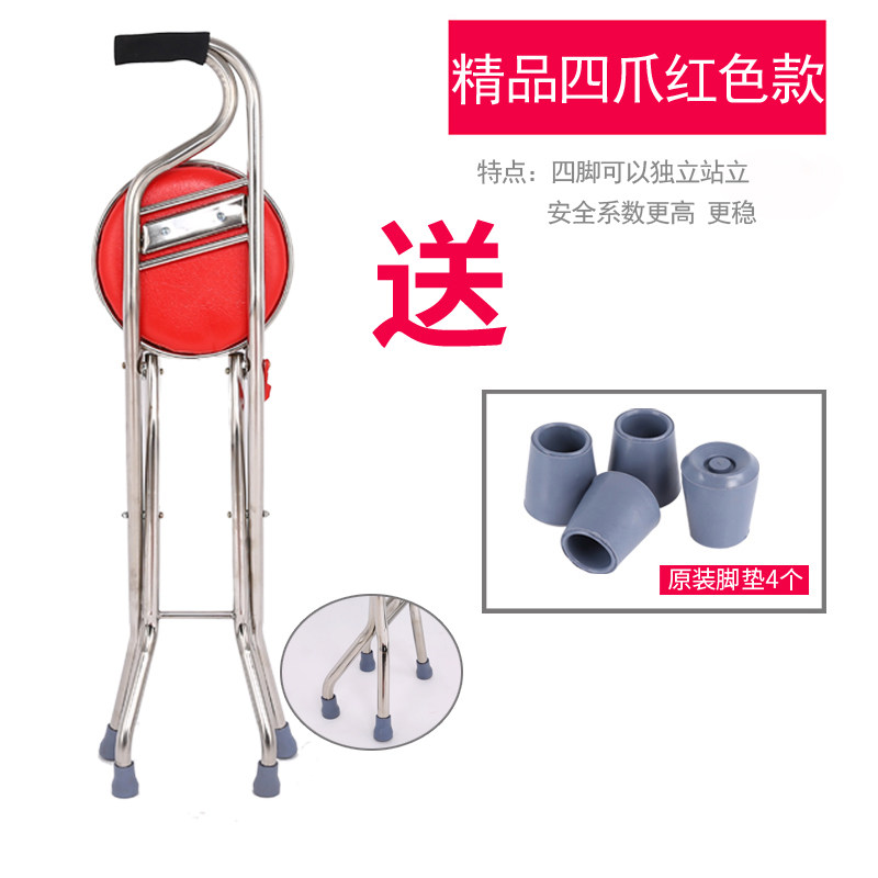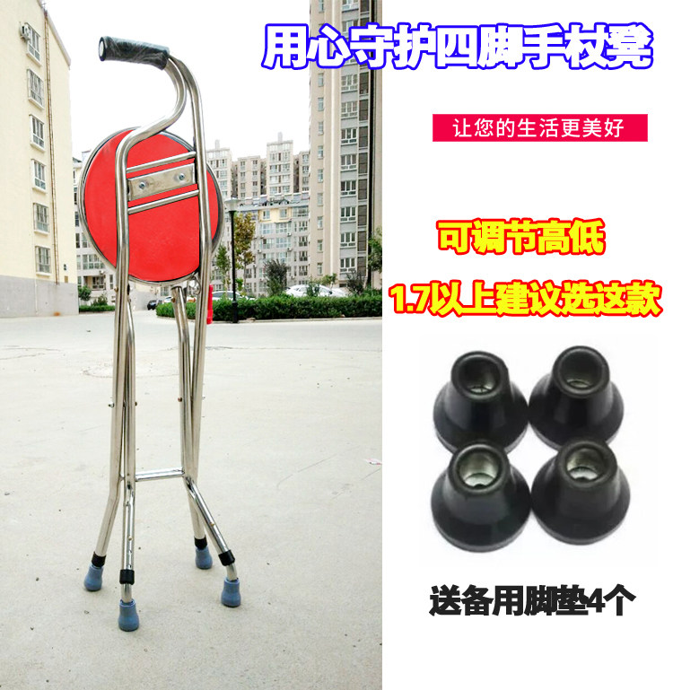 Elderly crutch stool Elderly crutch chair four-legged folding multi-functional belt sitting four-legged crutch Jiajia cane stool