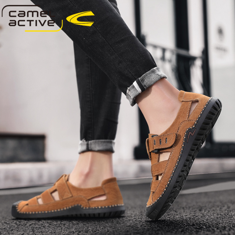 Camel Motivation sandals men's Korean beach shoes leather men's sandals outdoor anti-slip sandals