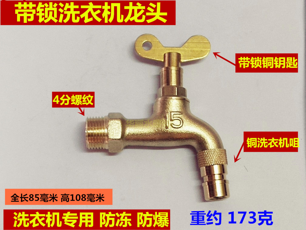 Old-fashioned slow open 64 points washing machine special all copper water bridle single cold extension outdoor lock key anti-freeze anti-theft