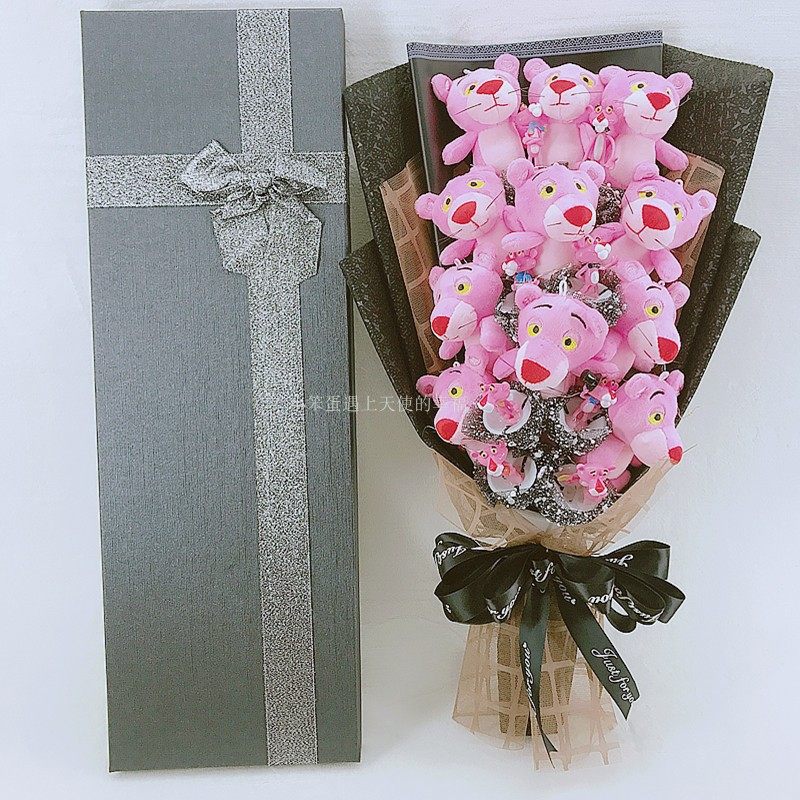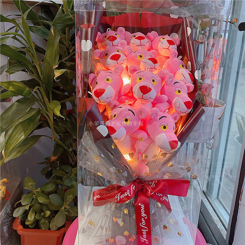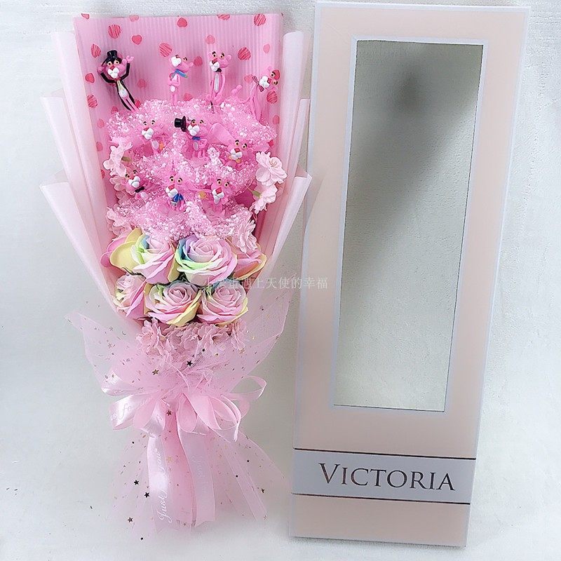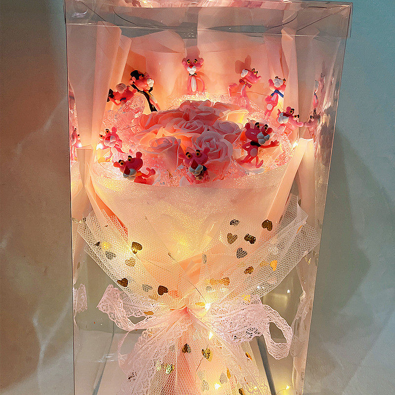 Girl Festival Pink Leopard Naughty Leopard Cartoon Paparazzi Doll Valentine's Day Soap Flower Bouquet Gift Box Creative Birthday Gift
