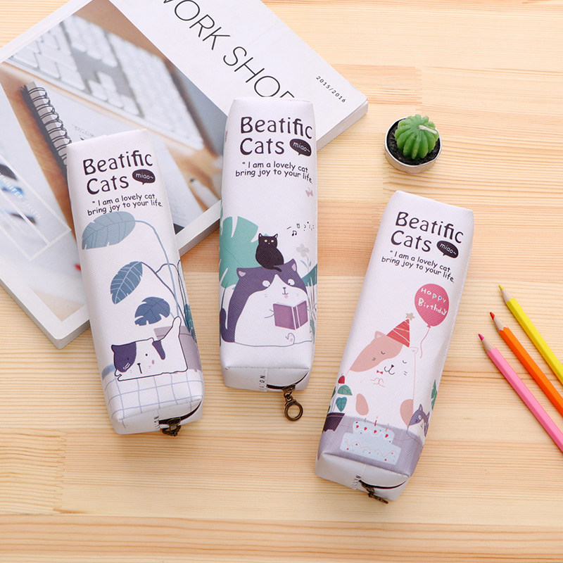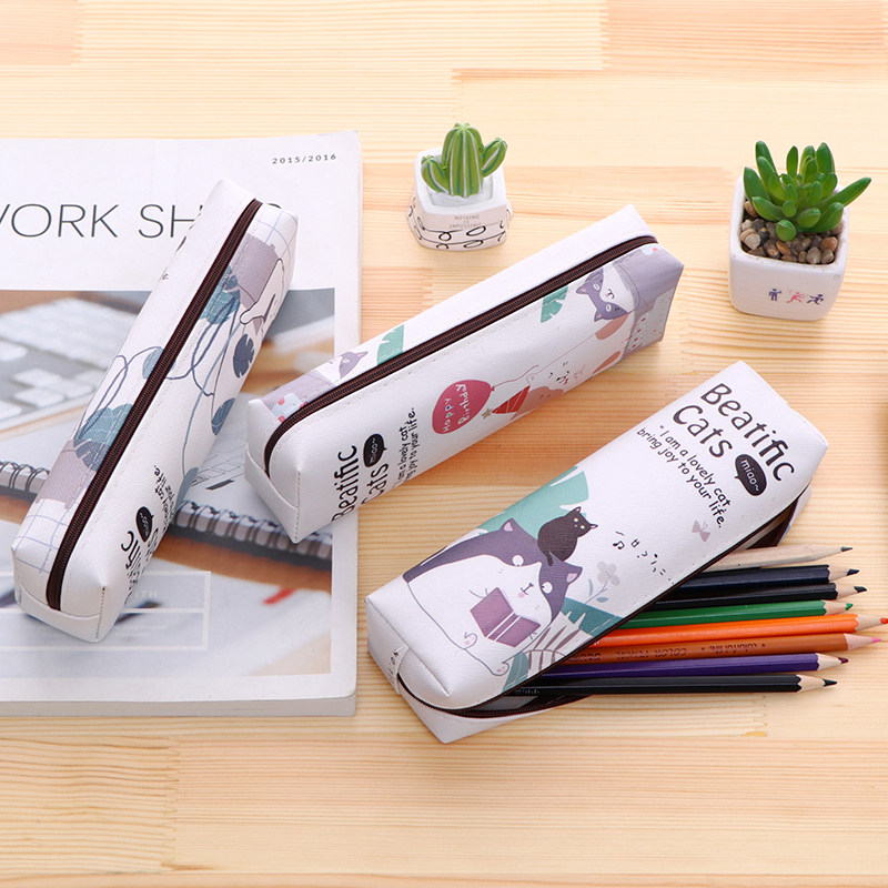 Cute little cat student stationery pen bag customizable LOGO children creative gift large capacity Korean version pen bag female