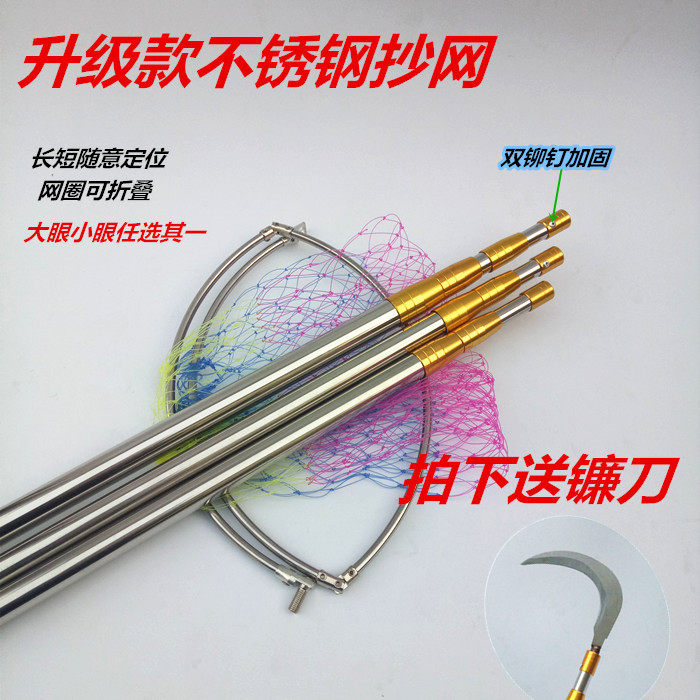 Stainless steel fishing thin eye fishing net pocket small folding stretchable fishing mesh fishing gear