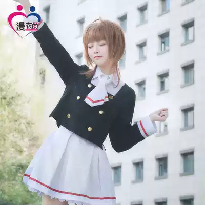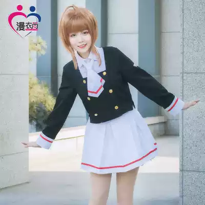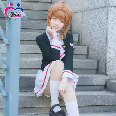 Magic card girl Zhishi Sakura cos uniform jk Kinomoto Sakura Wolf wig cosplay school uniform Daily clothing