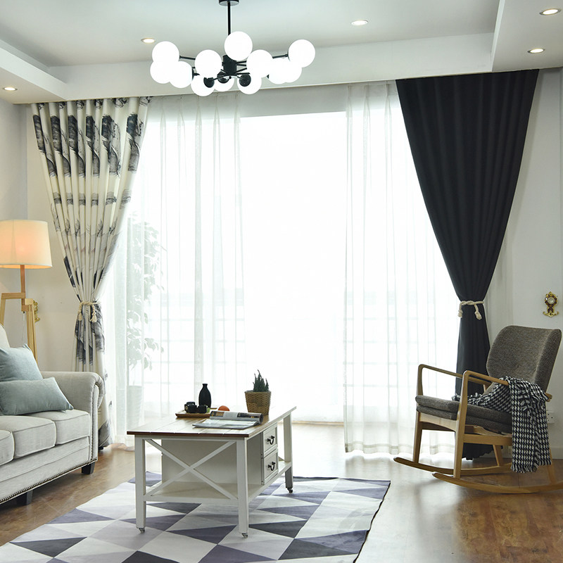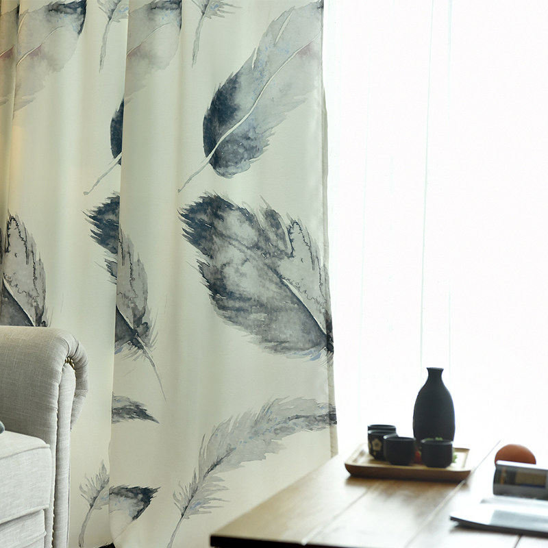 Personality Custom Ins White Feather Black Full Shading Window Cord Fabric Brief Modern Living-room Bedroom Sunscreen Sunscreen