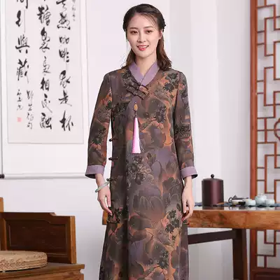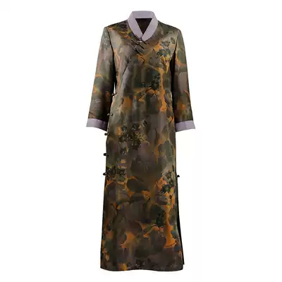 Qiushui ballad original (Zimo spring grass)Chinese style women's twill silk cheongsam Xiangyun yarn dress long sleeve