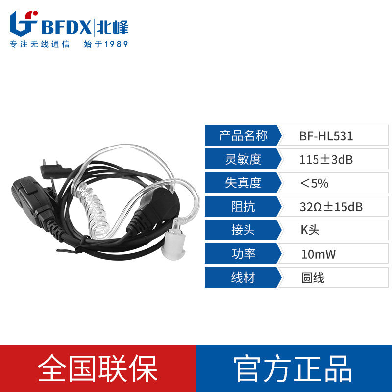 Beifeng universal K-head walkie-talkie headset air duct In-ear earphone walkie-talkie headset cable HL531