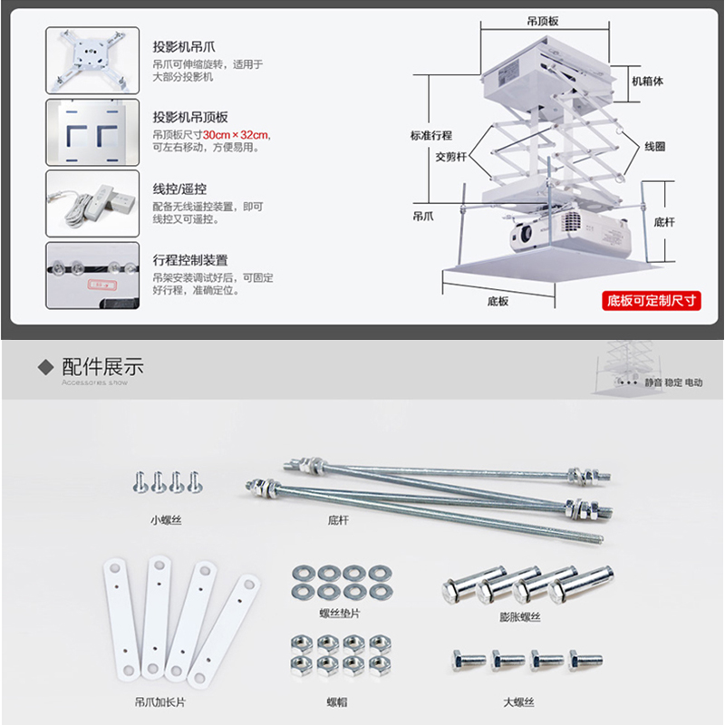 Projector electric hanger remote lifting installation 1 m electric lifting Motor 1 5 m 2 m 2 5 m 3 m lifting electric hanger hidden installation lifting projection hanger
