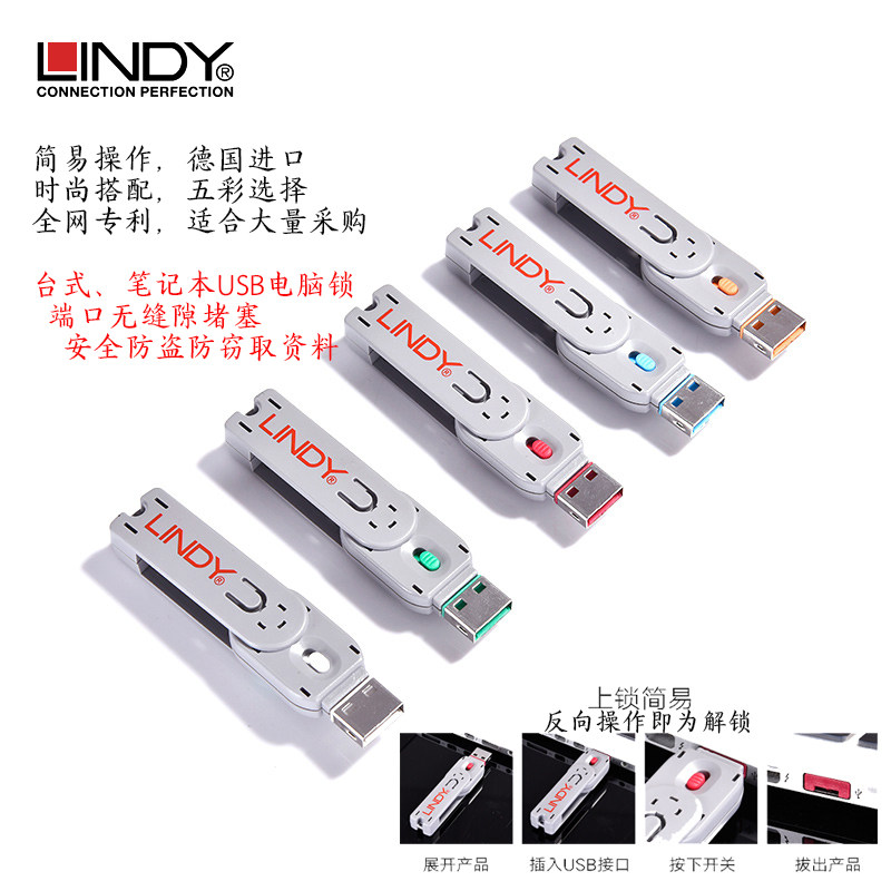 Germany LINDY notebook Desktop computer data anti-theft computer plugger USB lock USB universal port lock