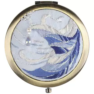 Wang's hand creates shark weeping beads DIY embroidery material bag makeup mirror mouth gold Portable small mirror folding