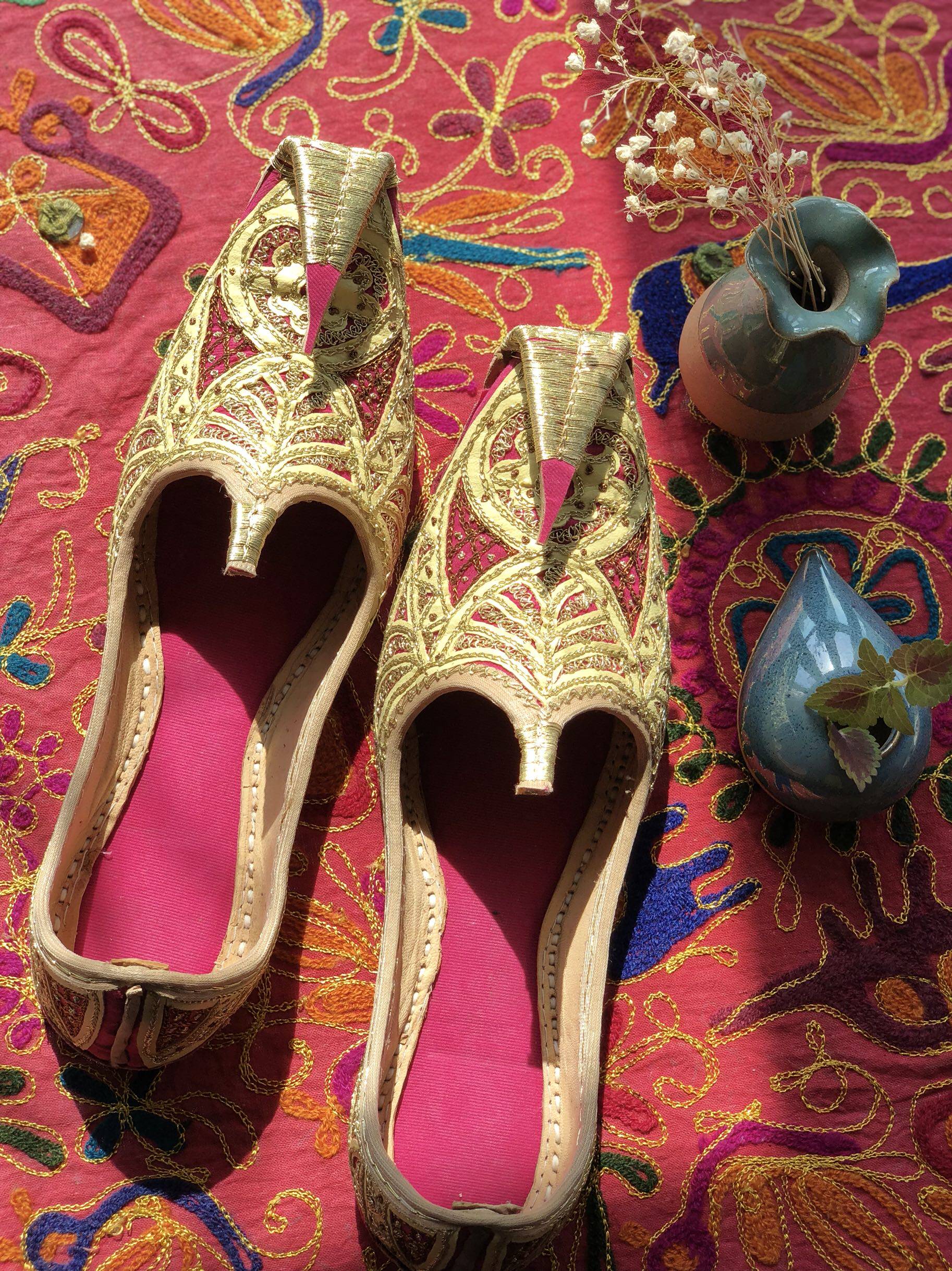 Pakistan handmade fine embroidery ticking low to help women's shoes rose red