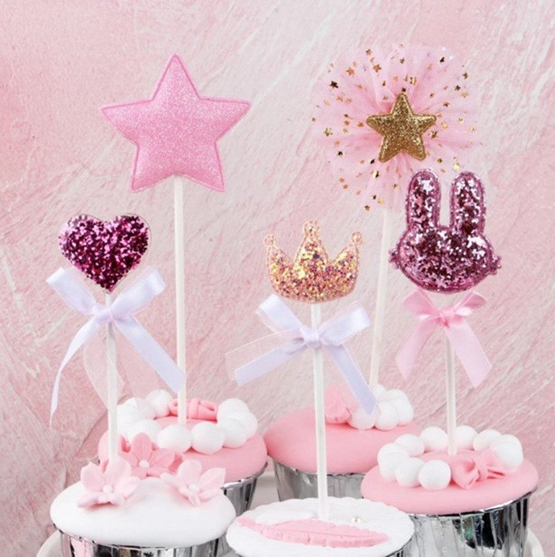 Cake decoration Shining stars love Rabbit Ears Party decoration plug-in Lace bow Dessert table plug-in