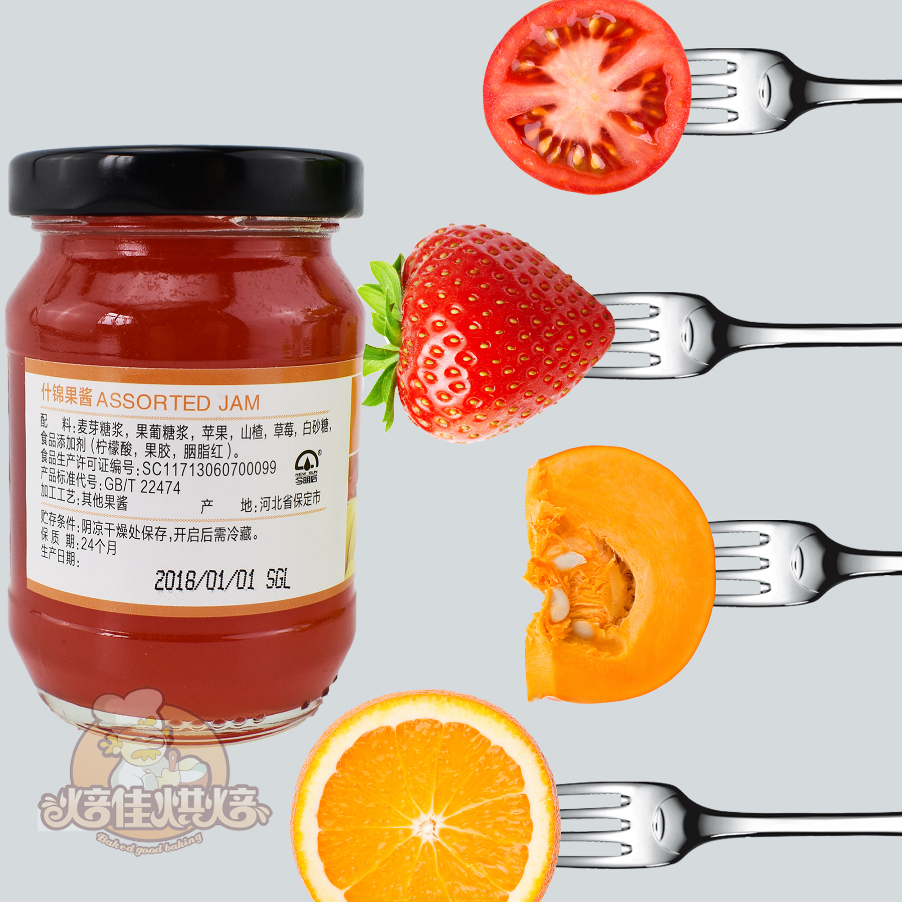 Assorted jam strawberry blueberry pineapple orange assorted cake bread jam whole box of 12 bottles