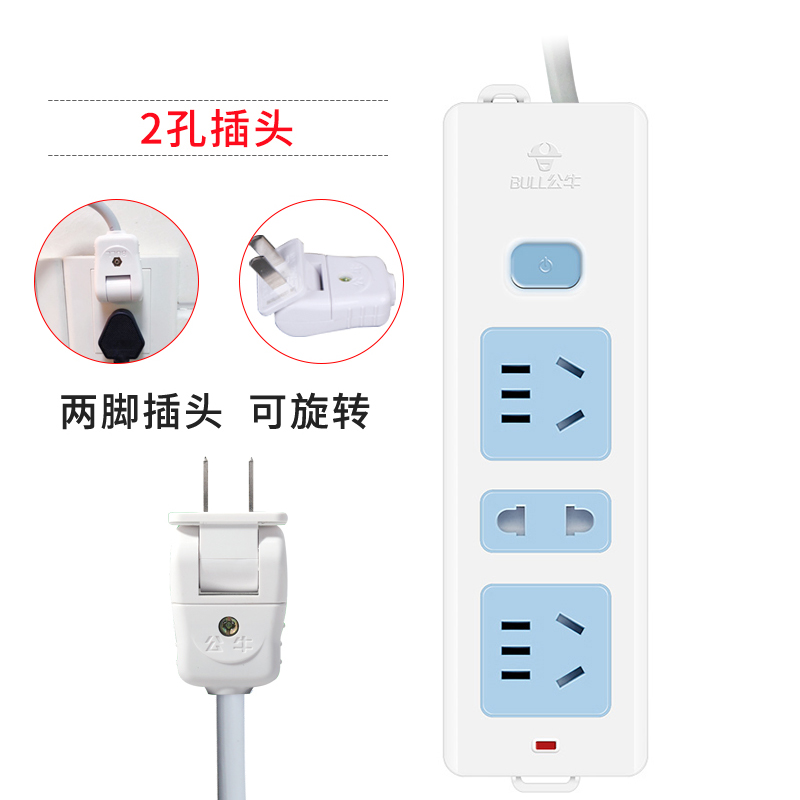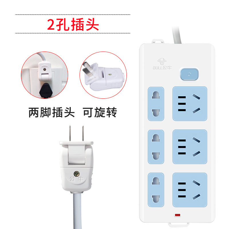 Bull socket two-hole plug wiring board Household two-pin plug cable extension cable 1 2 5 8 10-meter socket