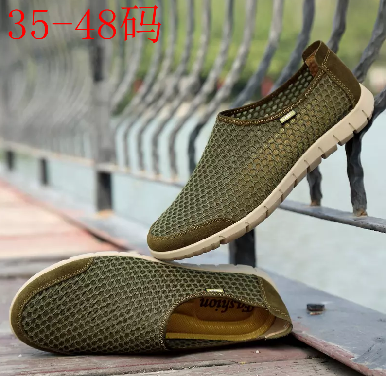 Leather mesh shoes men's summer breathable thin large mesh shoes deodorant hollow mesh shoes middle-aged and elderly slip-on casual shoes