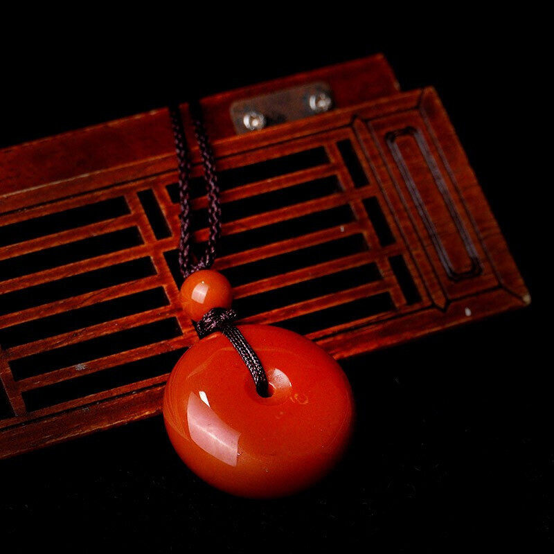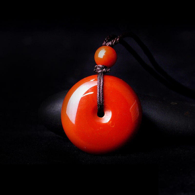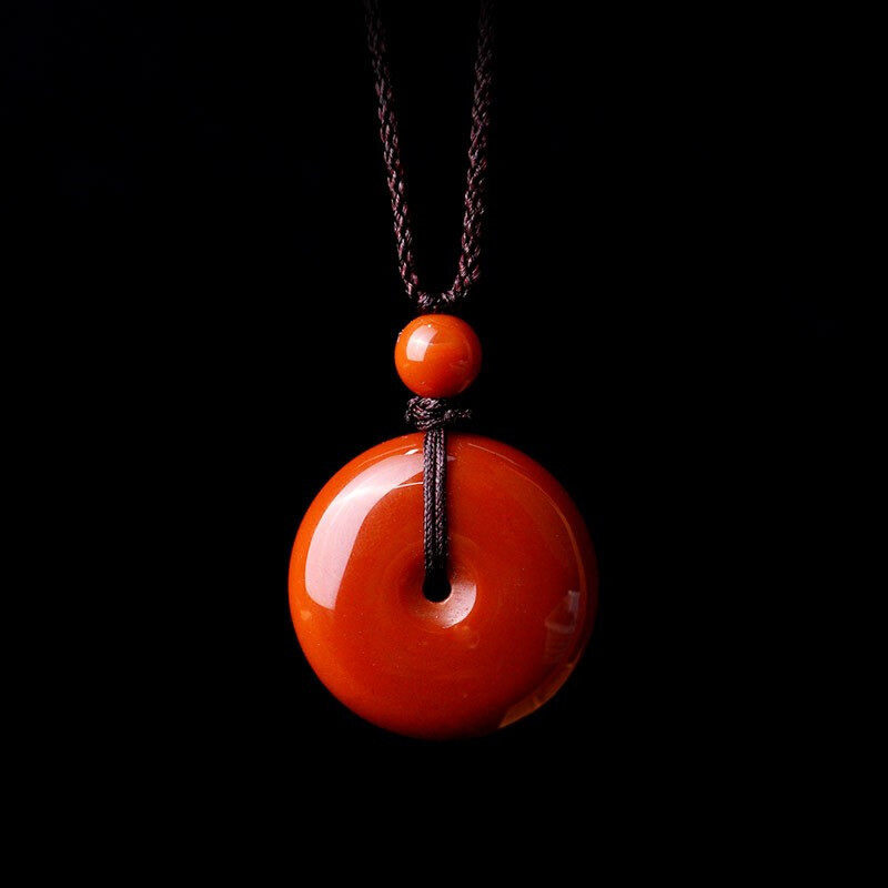 Yutang Liangshan South Red Agate Pendant Safe Buckle Necklace Natural Persimmon Red Full Color Full Meat Flame Pattern Clavicle Chain